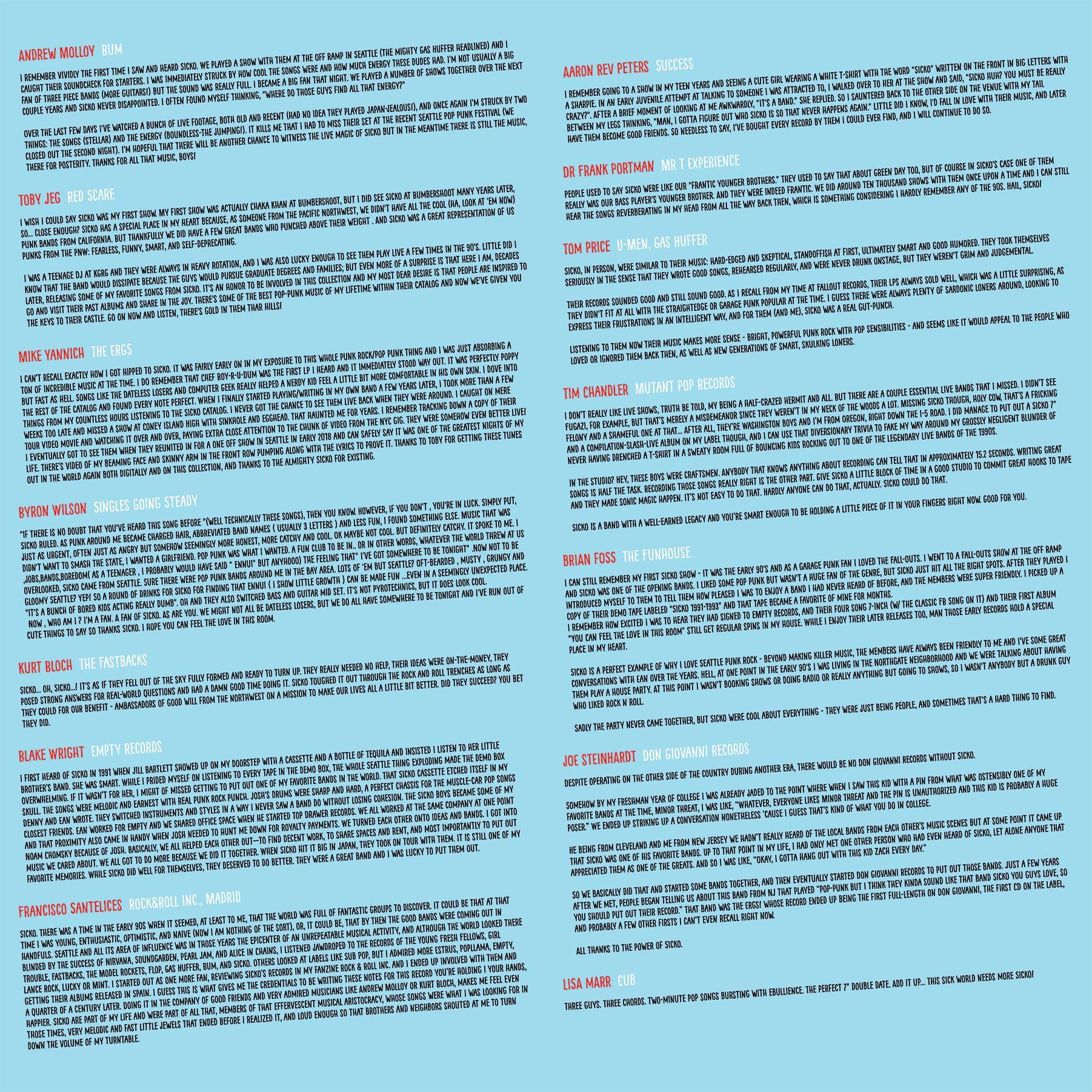 19 Songs from the full range of the Sicko back catalog... from the 1st 7" to the last LP. Remastered by Mass Giorgini.