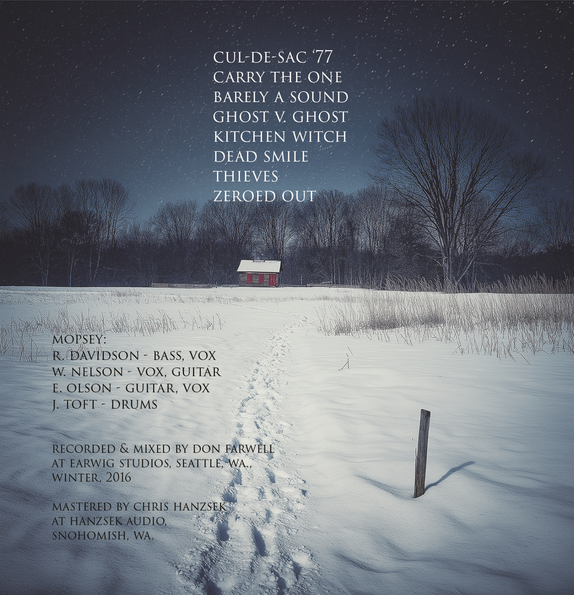 Mopsey's 2017 debut CD. High energy songs with driving guitars and elegant vocals, evoking great underground pop rock like Flop, Supergrass, and GBV. 8 Songs, 26 minutes.
