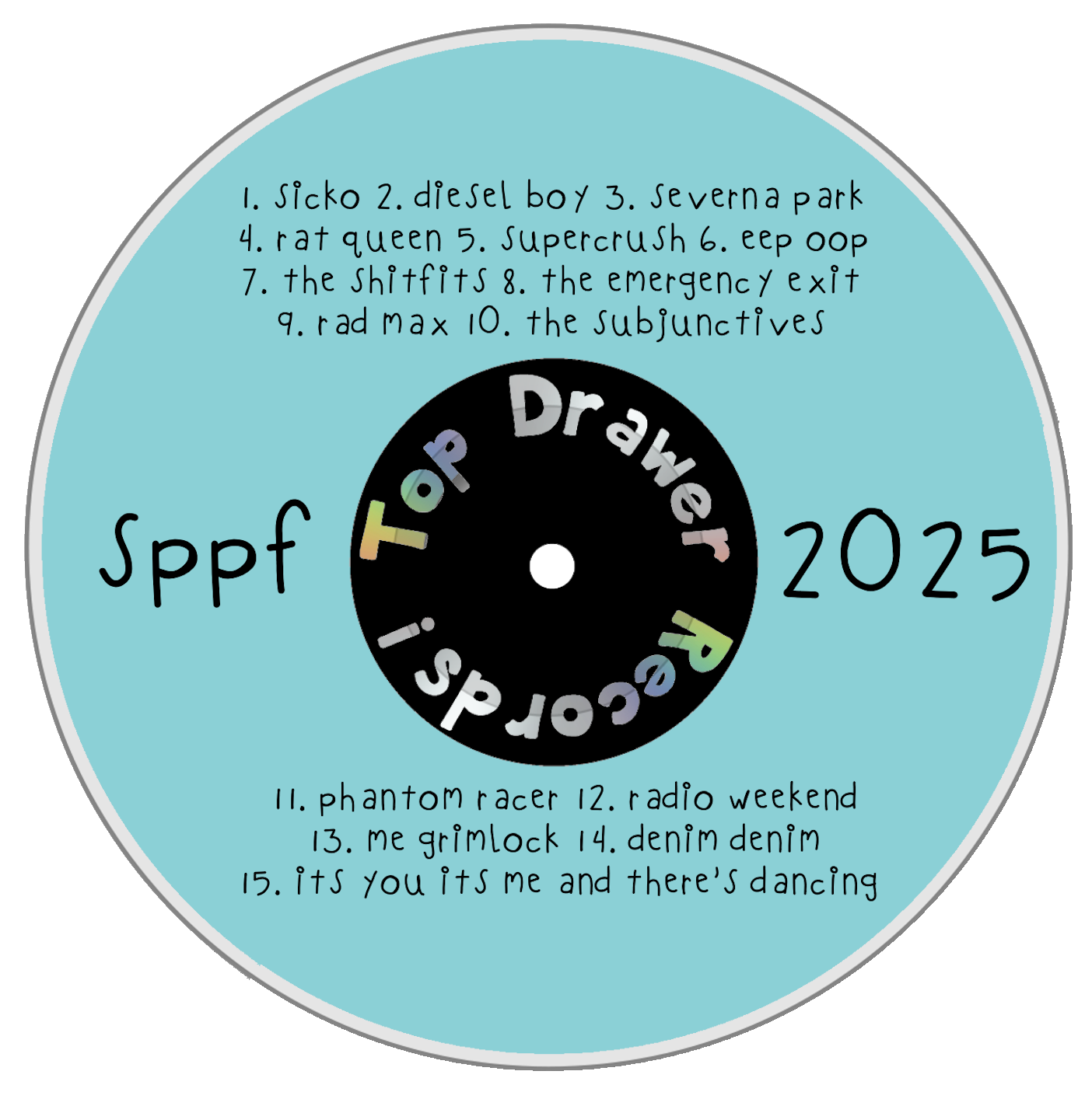 sicko, diesel boy, severna park, rat queen, supercrush, eep oop, the shitfits, the emergency exit, rad max, the subjunctives, phantom racer, radio weekend, me grimlock, denim denim, its you its me and there’s dancing